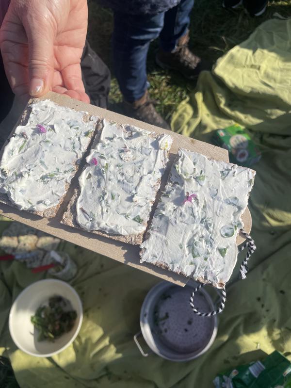 Dort gab es einiges zu entdecken: Unter Anleitung suchten die Kinder nach verschiedenen Kräutern und verarbeiteten diese anschließend zu einem köstlichen Kräuterquark und einer leckerer Kräuterbutter. Auf Knäckebrot wurde das Selbstgemachte dann mit großem Genuss verspeist.